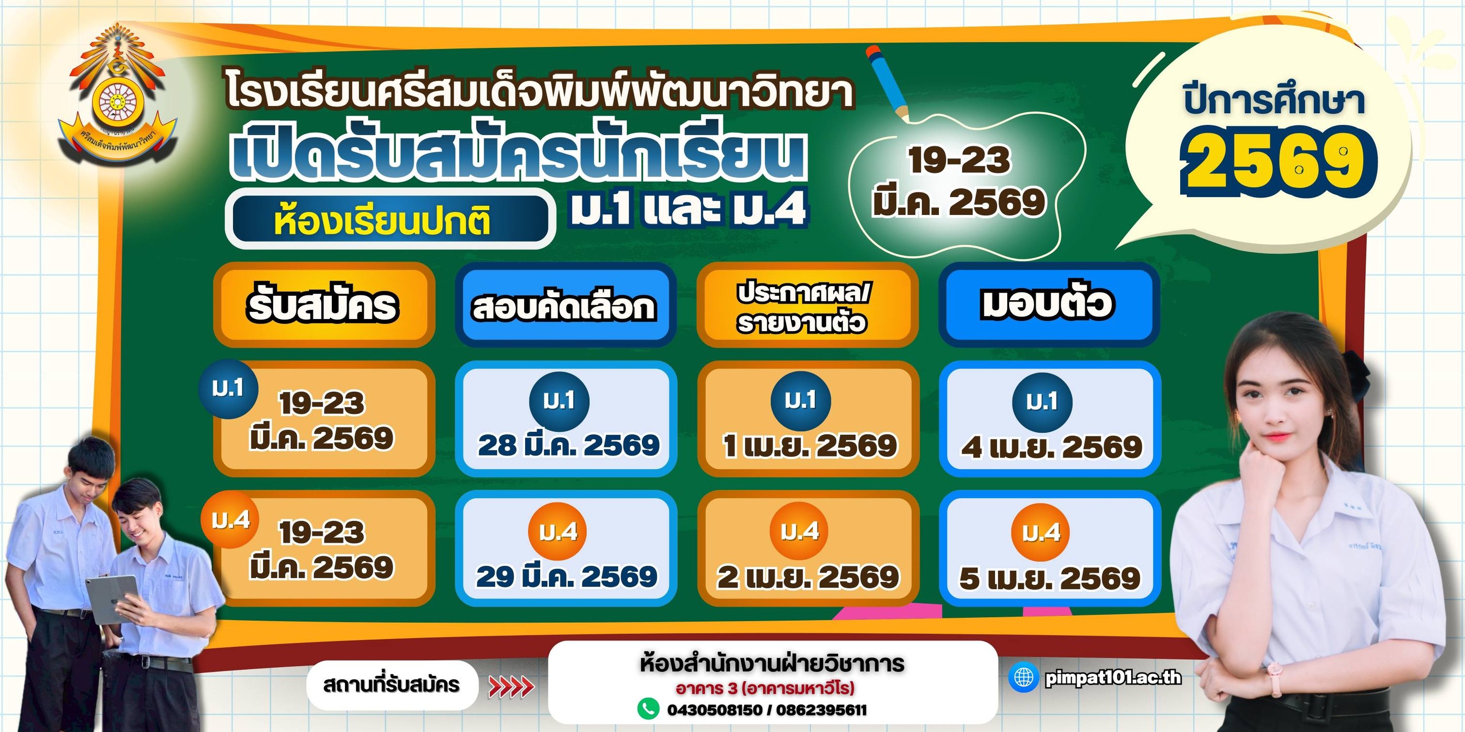 เปิดรับสมัครนักเรียนใหม่ ชั้น ม.1และ ม.4 (ประเภทห้องเรียนปกติ) ประจำปีการศึกษา2569 -