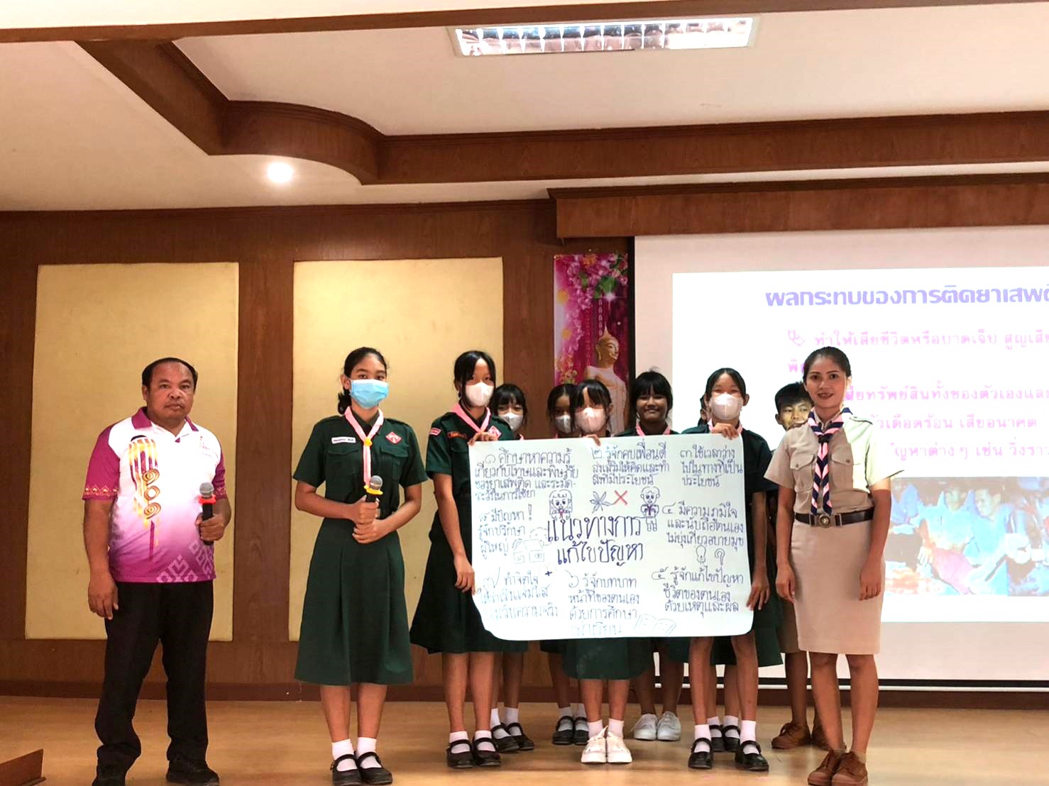 โครงการอบรมลูกเสือต้านภัยยาเสพติดในสถานศึกษา 13 มิถุนายน 2566 ณ ห้องประชุมพระเทพวิสุทธิมงคล โรงเรียนศรีสมเด็จพิมพ์พัฒนาวิทยา สพม.ร้อยเอ็ด โดยประธานในพิธีเปิดคือ ผอ.สุริยา สิงห์ชา รองฯยิ่งยศ บุญมั่งมี กล่าวรายงานถึงวัตถุประสงค์โครงการ ผลที่คาดว่าจะได้รับ อื่นๆ โดยมีวิทยากรมาให้ความรู้เกี่ยวกับภัยของยาเสพติด กลุ่มที่เข้าอบรมคือ นักเรียนชั้น ม.1/1 และ 1/5