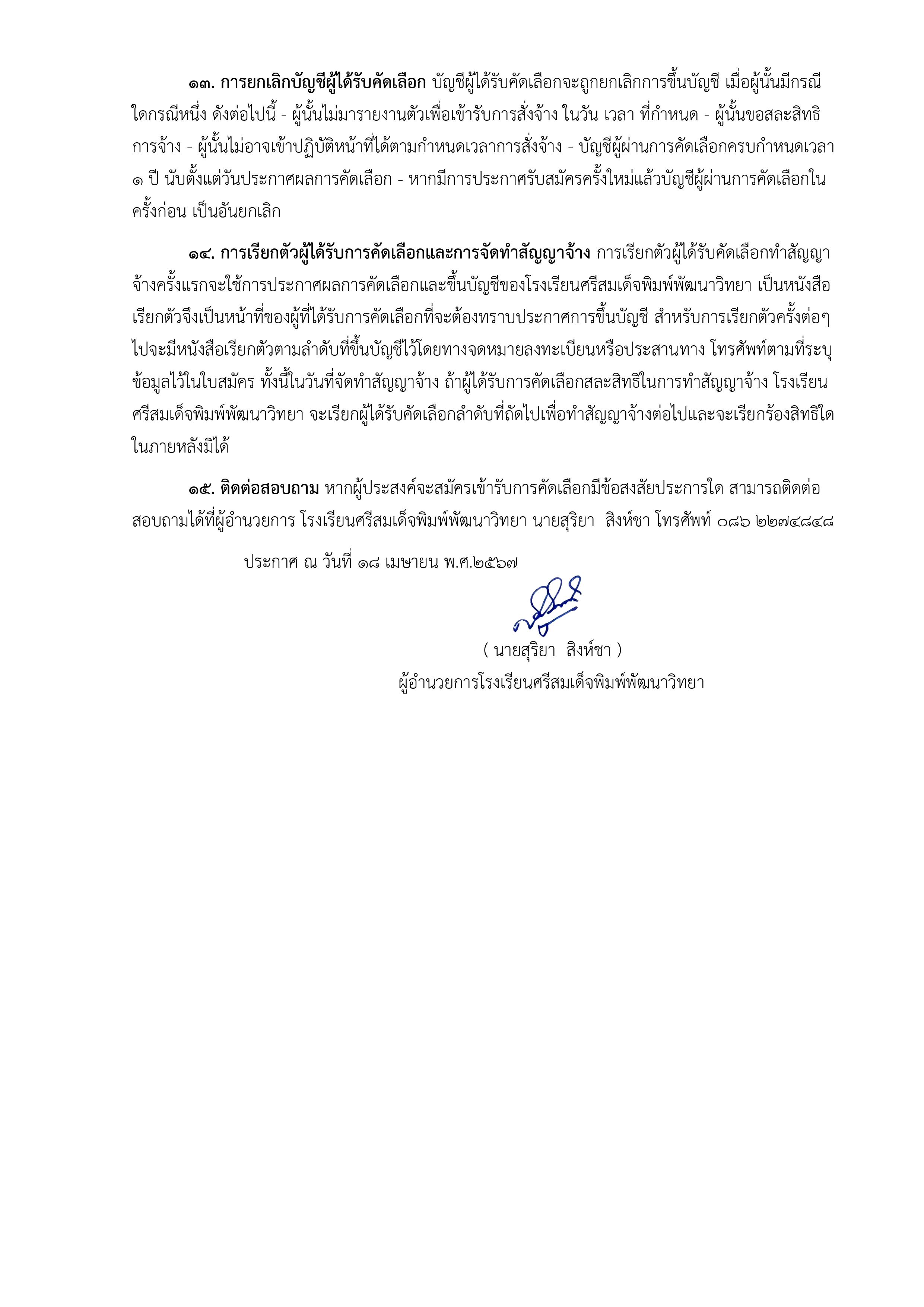 ประกาศโรงเรียนศรีสมเด็จพิมพ์พัฒนาวิทยา เรื่อง รับสมัครคัดเลือกบุคคลเพื่อจ้างเป็นลูกจ้างชั่วคราว ผู้ปฏิบัติงานให้ราชการ ตำแหน่งนักการภารโรง
